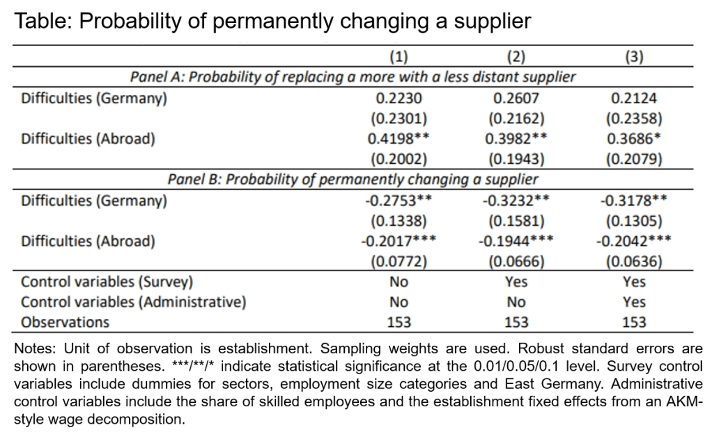 The Covid-19 pandemic has caused major disruptions in international trade and has raised concerns about adverse effects on international supply chains. Using a unique establishment survey matched with administrative data from Germany, we provide novel evidence on how establishments have adjusted their supply chains in response to pandemic-induced disruptions. We find that establishments that experienced difficulties in obtaining intermediate inputs as a result of the pandemic are significantly more likely to change their network of suppliers than establishments without such problems, especially if disruptions affected imports from abroad. Establishments experiencing supply chain difficulties are more likely to replace a distant with a closer supplier. However, these adjustments in response to the pandemic appear to be temporary.